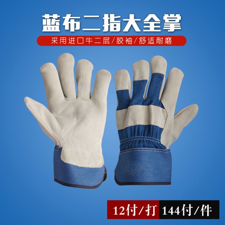 蓝布二指大全掌电焊手套